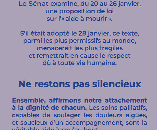 Le Cercle Saint-Honoré (Paroisse Saint-Honoré) vous invite à la conférence « Euthanasie : abandonner ou soigner ? » le 16 janvier