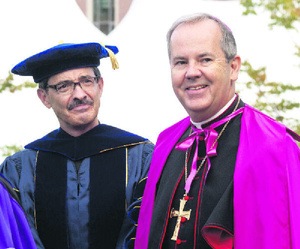 Mgr Joseph Bambera en compagnie du Père Kevin Quinn, S.J., président de la University of Scranton (16 septembre 2011). Les sourires ne sont plus aujourd’hui à l’ordre du jour…