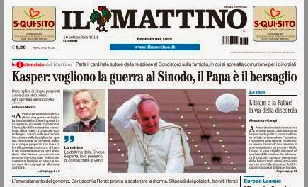 Le cardinal Kasper revient à la charge. A quelques semaines du synode extraordinaire sur la famille, celui qui avait lancé au dernier consistoire sa bombe sur l’accès des divorcés « remariés » à la communion vient d’accorder plusieurs interviews en italien et en allemand où il accuse ceux qui ont manifesté leur désaccord avec lui de viser, en réalité, le pape lui-même. C’est en particulier dans un entretien publié par Il Matino que le cardinal se montre le plus virulent : certains de ses adversaires, dit-il, pourraient bien « vouloir une guerre doctrinale ».