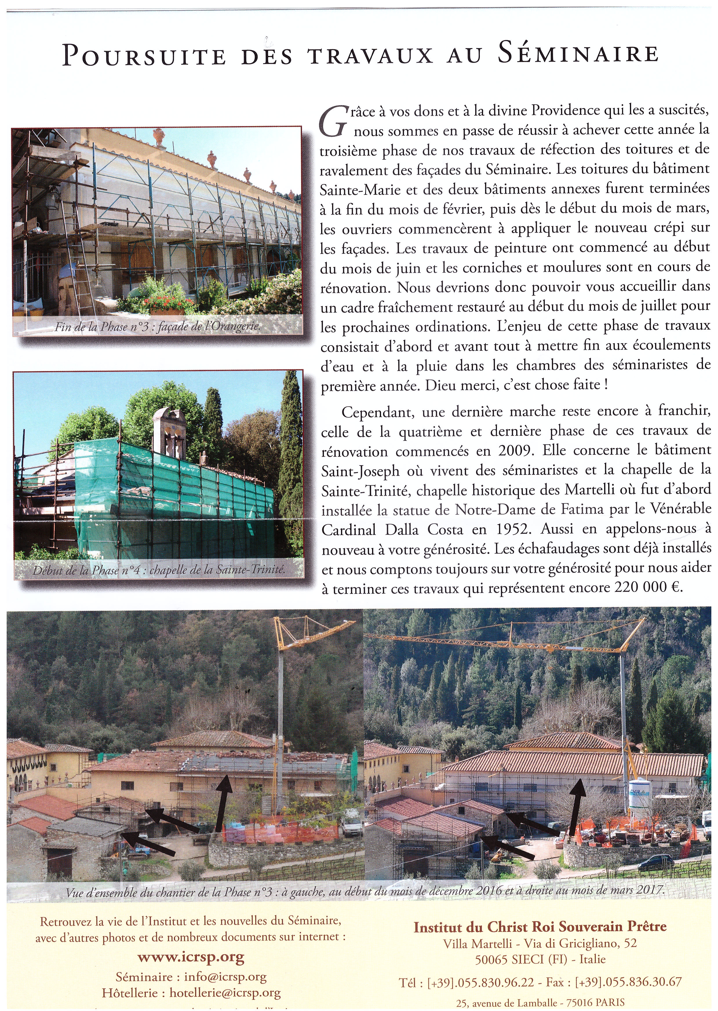 Alors que les ordinations ont lieu dans quelques jours, le Séminaire Saint-Philippe Néri de Gricigliano (ICRSP) a publié sa lettre aux amis revenant notamment sur la poursuite de travaux de réfection des toitures devenue impérative en raison des nombreuses infiltrations d’eau.