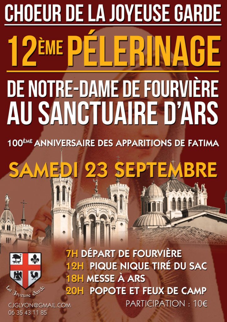 Accueil » Nos archives » Pèlerinage du Chœur de la Joyeuse Garde à Ars le 23 septembre Summorum Pontificum Pèlerinage du Chœur de la Joyeuse Garde à Ars le 23 septembre Le Choeur lyonnais La Joyeuse Garde organisé son 12ème Pèlerinage de Notre-Dame de Fourvière à Ars le samedi 23 septembre Article précédentRéélection de la Prieure Générale des Dominicaines de Fanjaux Article suivantMesses dans la forme extraordinaire pour le Pèlerinage National à Lourdes 11 août 2017