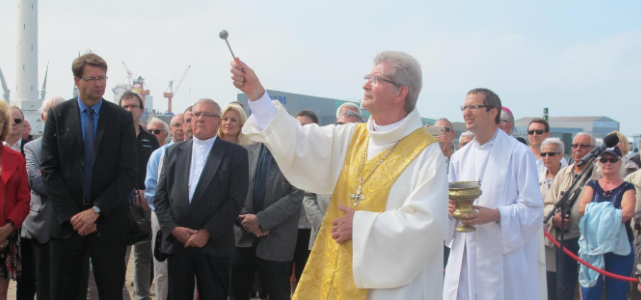Sur la vedette de la SNSM (Société nationale de sauvetage en mer) ont embarqué les autorités ecclésiastiques pour bénir les flots et rappeler la mémoire des disparus en mer.