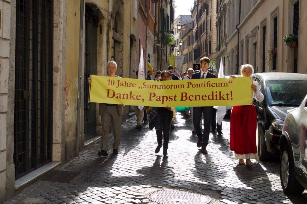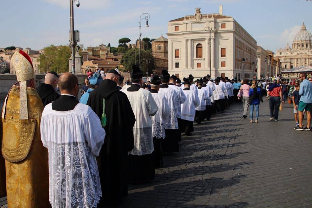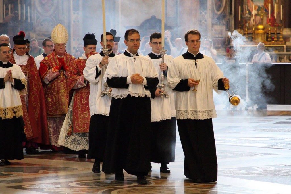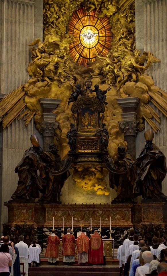 Puis les pèlerins sont partis en procession vers la Basilique saint-Pierre sous la conduite de Mgr Pozzo, secrétaire de la Commission Pontificale Ecclesia Dei, qui a célébré la messe à l’autel de la Chaire de Saint-Pierre.