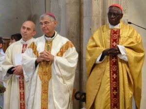 Saint Vincent de Paul est mort le 27 septembre 1660. C’est donc que 27 septembre que sa fête est célébrée dans toute l’Eglise, et ce sera tout particulièrement le cas cette année, dans le diocèse de Belles-Ars. Châtillon-sur-Chalaronne continue en effet à fêter les 400 ans du passage du saint ; les célébrations pour sa fête vont durer toute une semaine. Le dimanche 24 septembre, Mgr Pascal Roland y a célébré la messe ; il y a ensuite des conférences, un colloque sur la charité de St Vincent. On peut signaler en particulier la conférence donnée par le cardinal Sarah mercredi 27 septembre sur les enjeux contemporains de la Charité dans le monde, avant la messe de la saint Vincent qu’il célèbre à Châtillon à 18h.