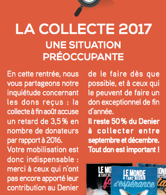 Accueil » Nos archives » Le denier du diocèse de Lyon en baisse Perepiscopus Le denier du diocèse de Lyon en baisse C’est dans la nouvelle Lettre des donateurs que l’on apprend cela. Voici le détail rapide : Article précédentLe cardinal Ricard et la Fraternité Saint Pie X Article suivantComment parler d'accueil des migrants sans évoquer le terrorisme ? 6 octobre 2017