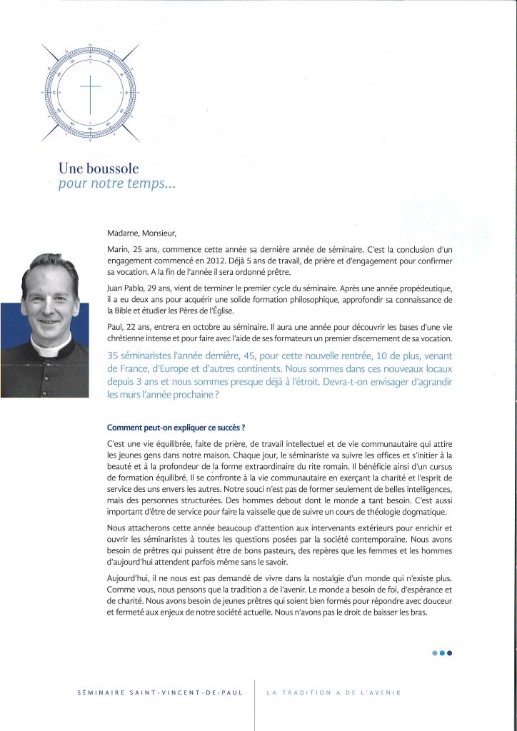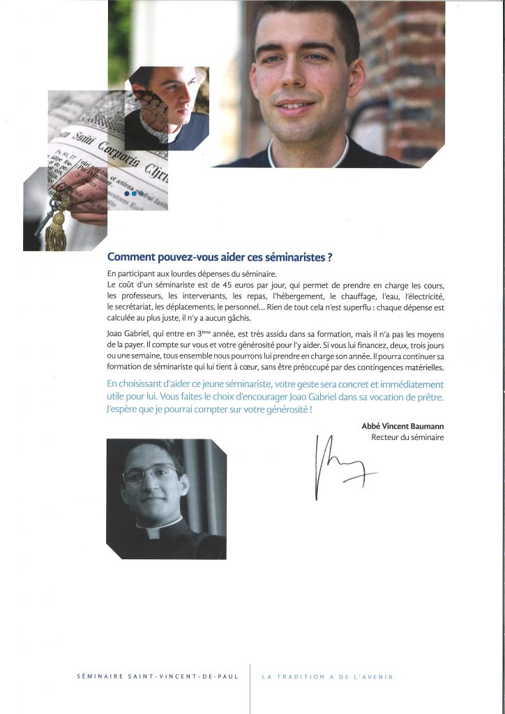 Nous relayons bien volontiers cet appel de l’abbé Vincent Baumann, recteur du Séminaire