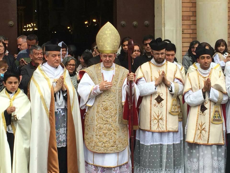 Accueil » Nos archives » Mgr Schneider à Bogota (Colombie) Summorum Pontificum Mgr Schneider à Bogota (Colombie) Le 10 novembre, Mgr Schneider a célébré une Messe Pontificale en l’église paroissiale de Saint Alphonse-Marie de Liguori à Bogota (Colombie). La messe a été organisée par l’Institut du Bon Pasteur avec la collaboration de la Fraternité Saint-Pierre. Photos Facebook IBP Article précédentL'enseignement catholique de Rodez se soumet au lobby LGBT Article suivantUn nouveau site internet pour l'Oeuvre des Retraites de la Fraternité Saint-Pierre 21 novembre 2017