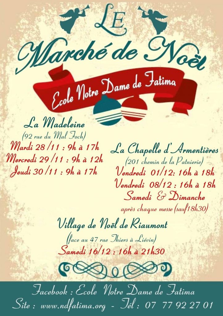 Marché de Noël de l’Ecole Notre-Dame de Fatima à la Chapelle d’Armentières le 8, 9 et 10 décembre