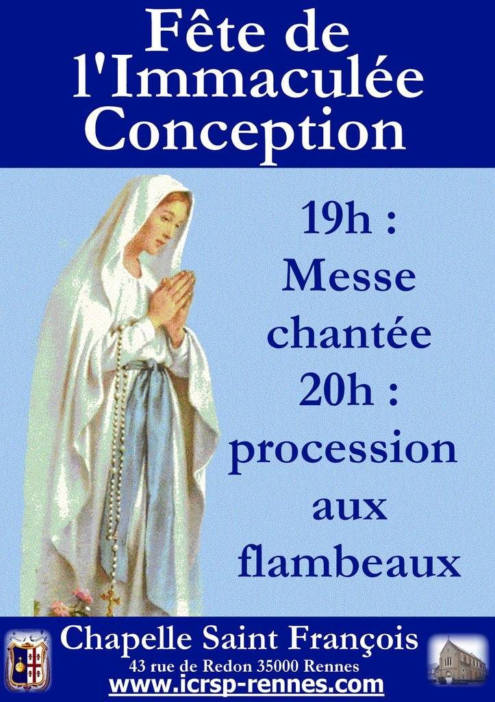 Accueil » Nos archives » Procession en l’honneur de l’Immaculée Conception à Rennes Summorum Pontificum Procession en l’honneur de l’Immaculée Conception à Rennes Vendredi 8 décembre aura lieu une procession en l’honneur de l’Immaculée Conception à Rennes Article précédentMesse de l'Immaculée Conception à Viry-Châtillon le 8 décembre Article suivantDes chants musulmans à l'église 6 décembre 2017
