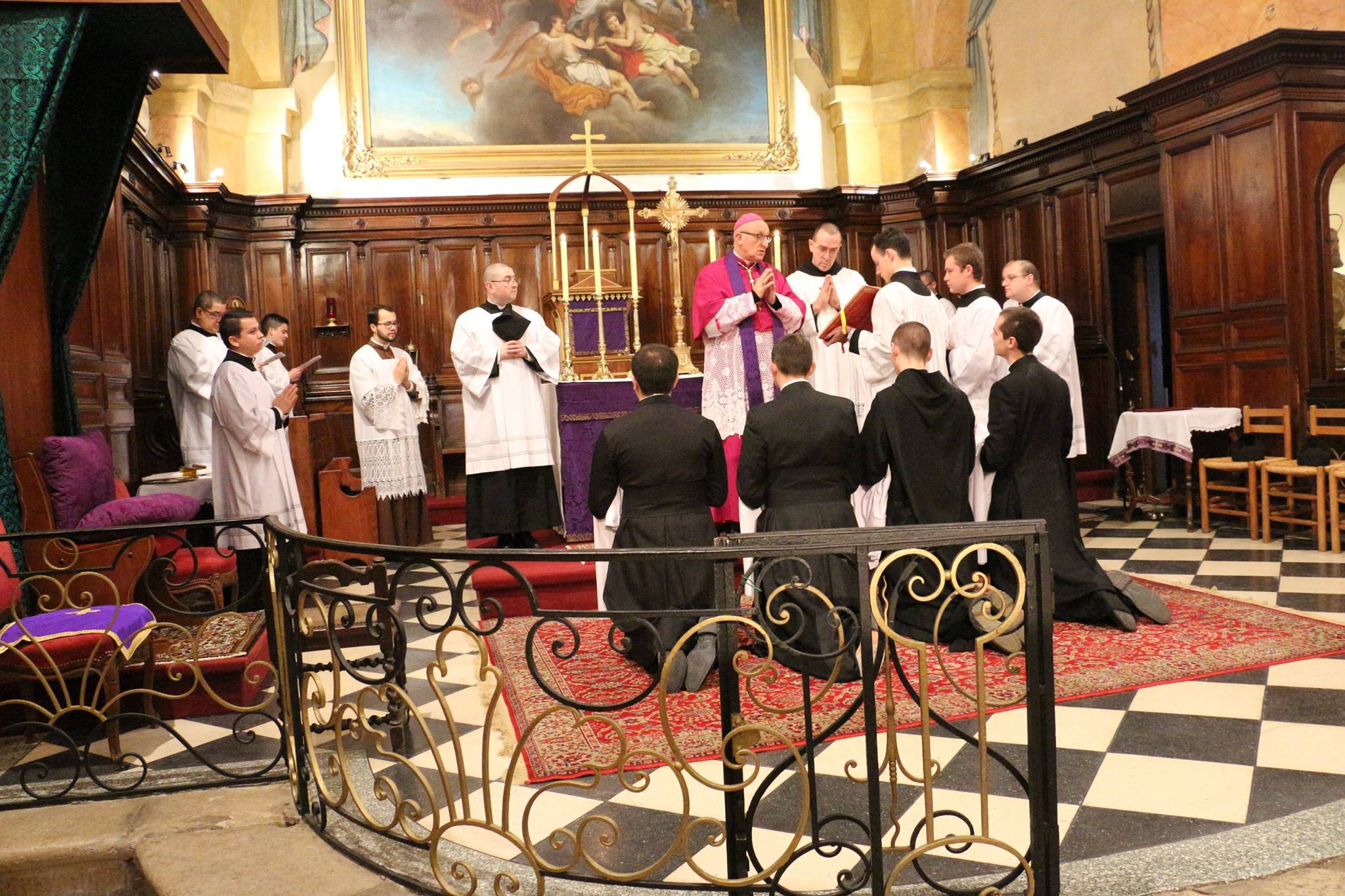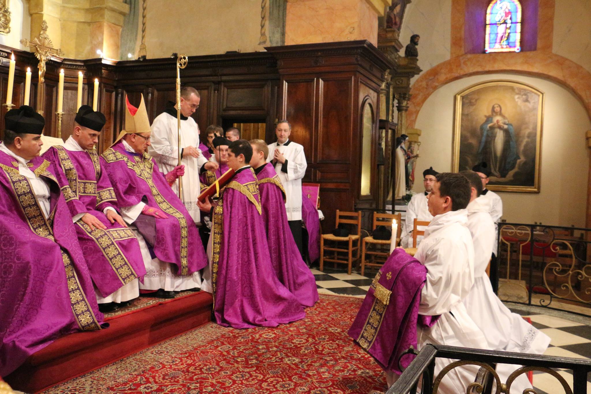 Le 23 décembre a eu lieu une messe dans la forme extraordinaire à l’église paroissiale de Bormes les Mimosas célébrée par Mgr Rey au cours de laquelle il a tonsuré 3 séminaristes de la Fraternité Saint Joseph, Gardien et un frère du Monastère Saint Benoit de la Garde-Freinet. Il a également procédé à des ordinations sous-diaconales pour la Fraternité Saint Joseph, Gardien. Cette fraternité dont les prêtres célèbrent dans les deux formes du rite romain a été érigée par Mgr Rey en 2010… et a des missions aux Etats-Unis, au Guatemala, au Salvador, au Chili et en France (dans le diocèse de Toulon).