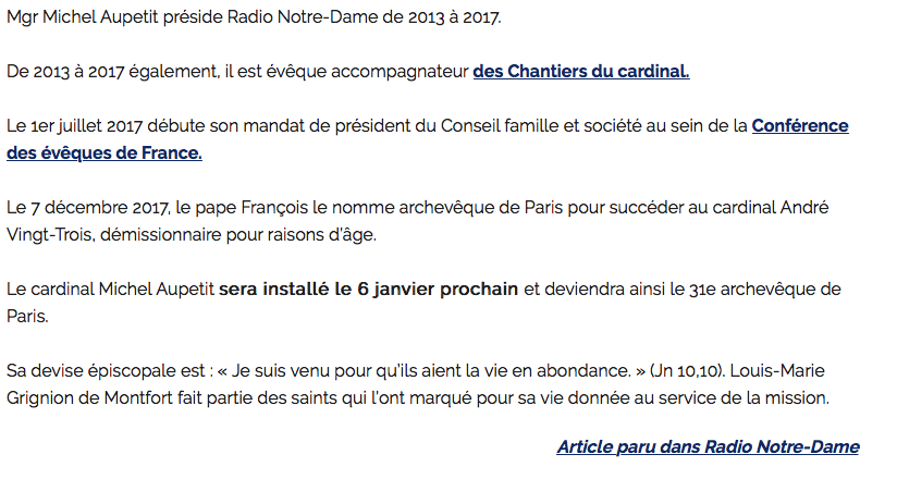 C’est seulement à 18h30, dans moins d’une heure à l’heure où j’écris ce post, que Mgr Michel Aupetit deviendra archevêque de Paris, mais certains le voient déjà cardinal… Et il ne s’agit pas de n’importe quel journaliste inculte : on lit ça même dans le journal de Paris Notre Dame.