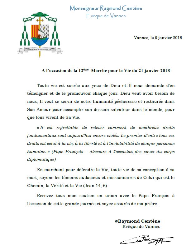 Accueil » Nos archives » Mgr Centène soutient la Marche pour la vie Perepiscopus Mgr Centène soutient la Marche pour la vie Article précédentMesse pour les étudiants au Panthéon (Rome) Article suivantLe cardinal Barbarin demande au pape de proclamer saint Irénée de Lyon docteur de l’Eglise 9 janvier 2018