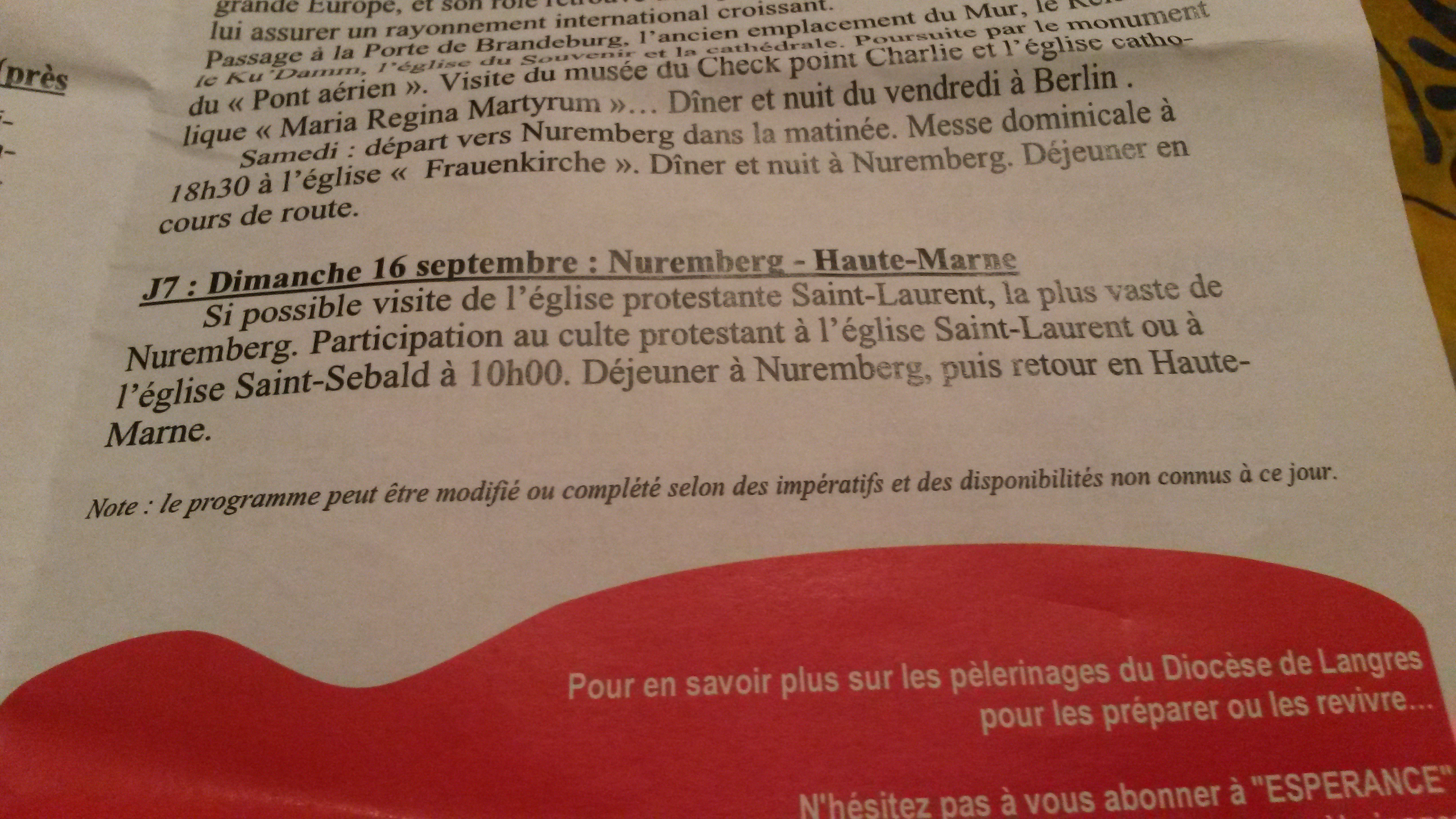 Une vision bien franco française de beaucoup… Il s’agit, dans le cadre des 500 ans, d’un voyage en Allemagne de culture plutôt protestante, luthérienne à Nüremberg.