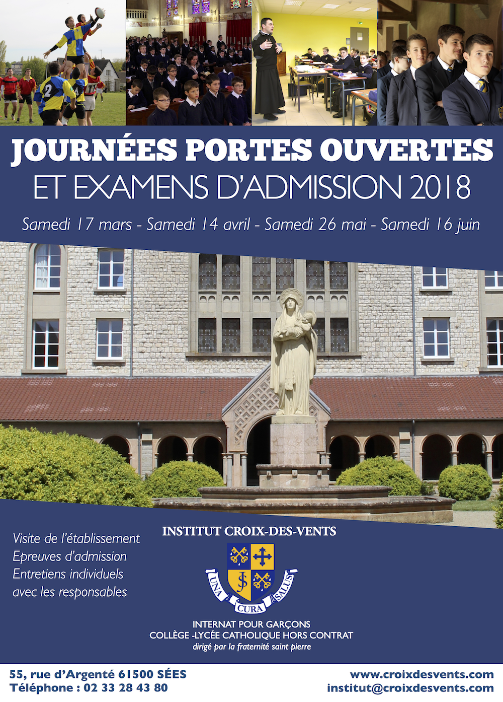 L’Institut Croix des Vents compte 170 élèves : une école primaire mixte en externat et un collège-lycée de garçons en internat. L’Institut est dirigé par des prêtres de la Fraternité Saint-Pierre. Il organise jusqu’à fin juin plusieurs journées portes ouvertes et session d’admission pour la rentrée 2018.