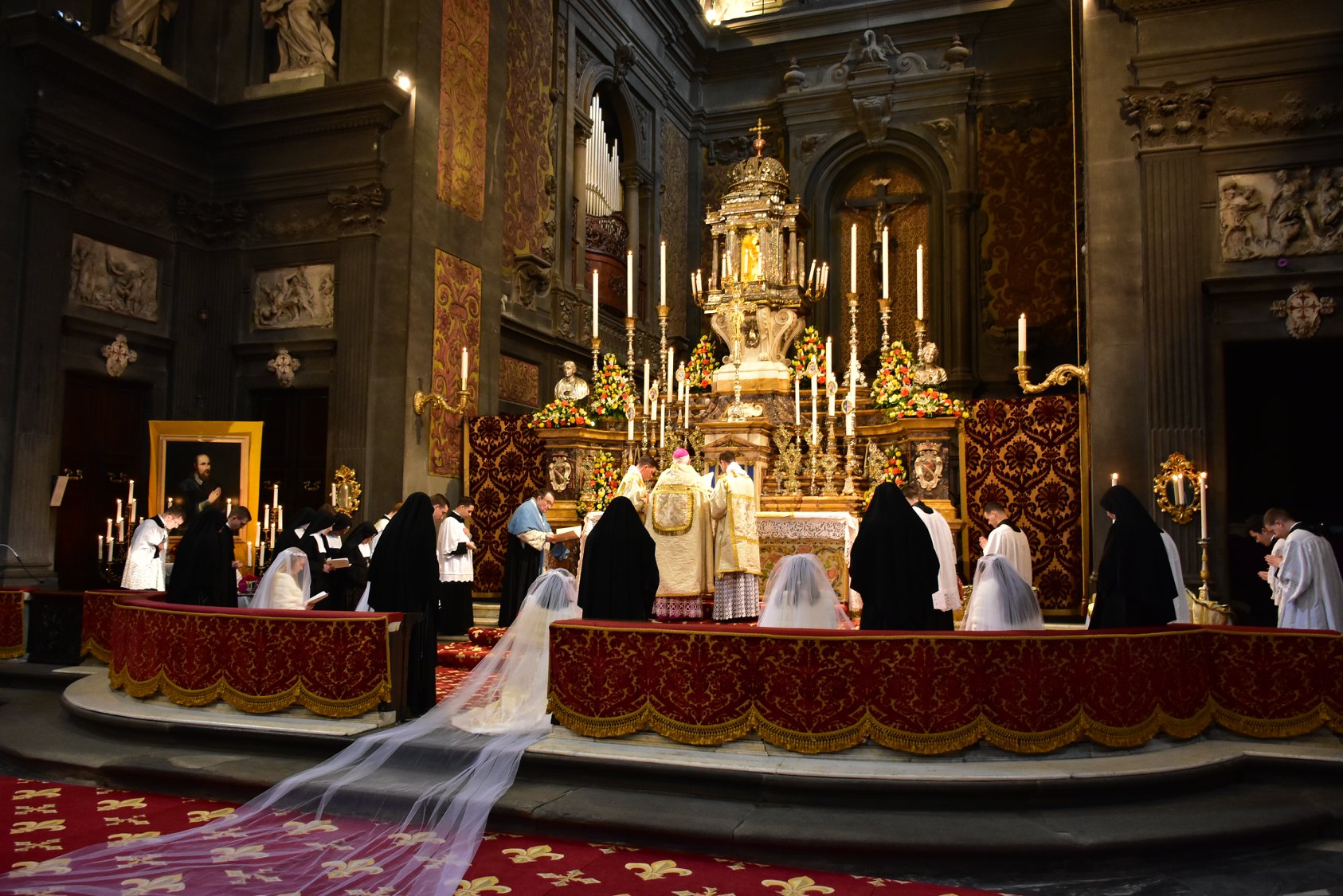 Le 29 janvier, en la solennité de Saint-François de Salles, 5 postulantes des Adoratrices du Coeur Royal de Jésus-Christ, communauté de la famille spirituelle de l’Institut du Christ-Roi, ont pris l’habit à Florence.