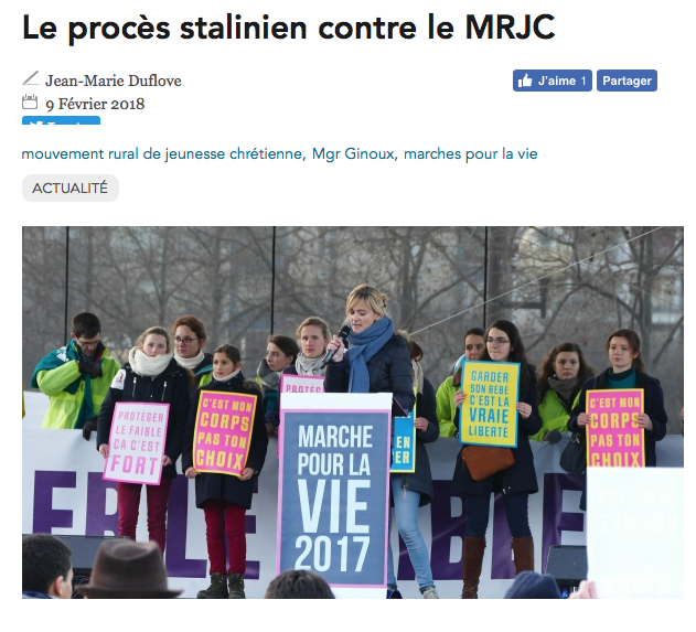 Que de Cauchon chez les évêques catholiques ! Voici que le Mouvement rural de jeunesse chrétienne (MRJC) subit un procès stalinien digne de la Corée du Nord ! Ce rassemblement de jeunes, honnête successeur de la Jeunesse agricole catholique (JAC), est à l’index. Son crime : rappeler des évidences de droit, de morale et de logique.
