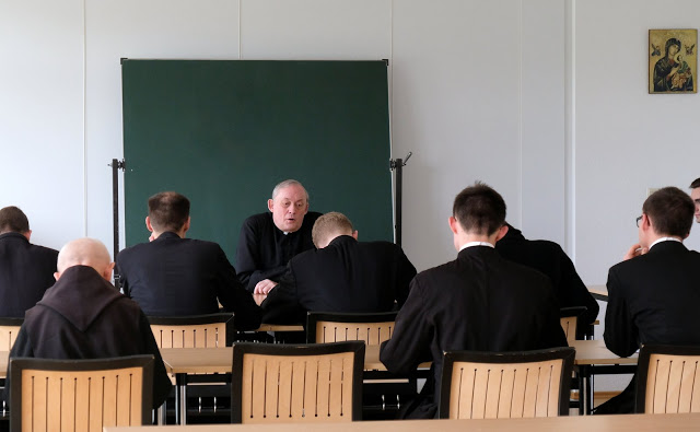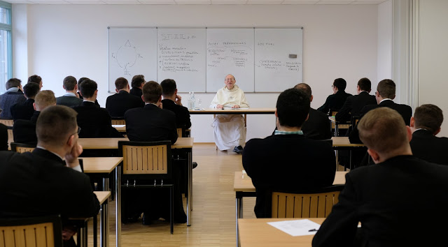 La retraite spirituelle qui marque la fin du premier semestre et le milieu de l’année s’achève ce vendredi à midi. Elle était prêchée pour les francophones par le RP Louis-Marie de Blignières, fondateur et supérieur de la Fraternité Saint-Vincent Ferrier, et pour les germanophones par le Kaplan Stephan Maessen, aumônier de la maison de retraite (et de retraites) de Sankt Pelagiberg, en Suisse.
