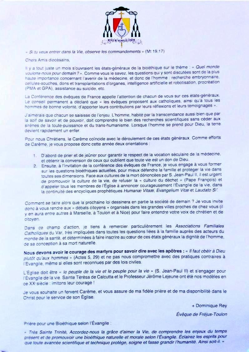 Voici la lettre pastorale de Mgr Dominique Rey, évêque du diocèse de Fréjus-Toulon, à l’occasion du Carême 2018. Cette lettre propose aux fidèles deux efforts de Carême :