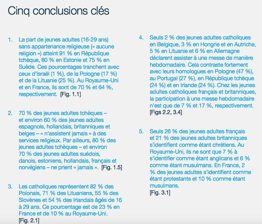 Accueil » Nos archives » Les jeunes adultes et la religion en Europe Perepiscopus Les jeunes adultes et la religion en Europe Il s’agit d’une enquête sociale européenne en vue d’informer le Synode des évêques 2018. L’étude est à retrouver ici. Article précédentBrève: A propos d'Angoulême et de l'application du Motu Proprio Article suivantMgr Michel Aupetit dans l'émission “Le grand témoin” 27 mars 2018