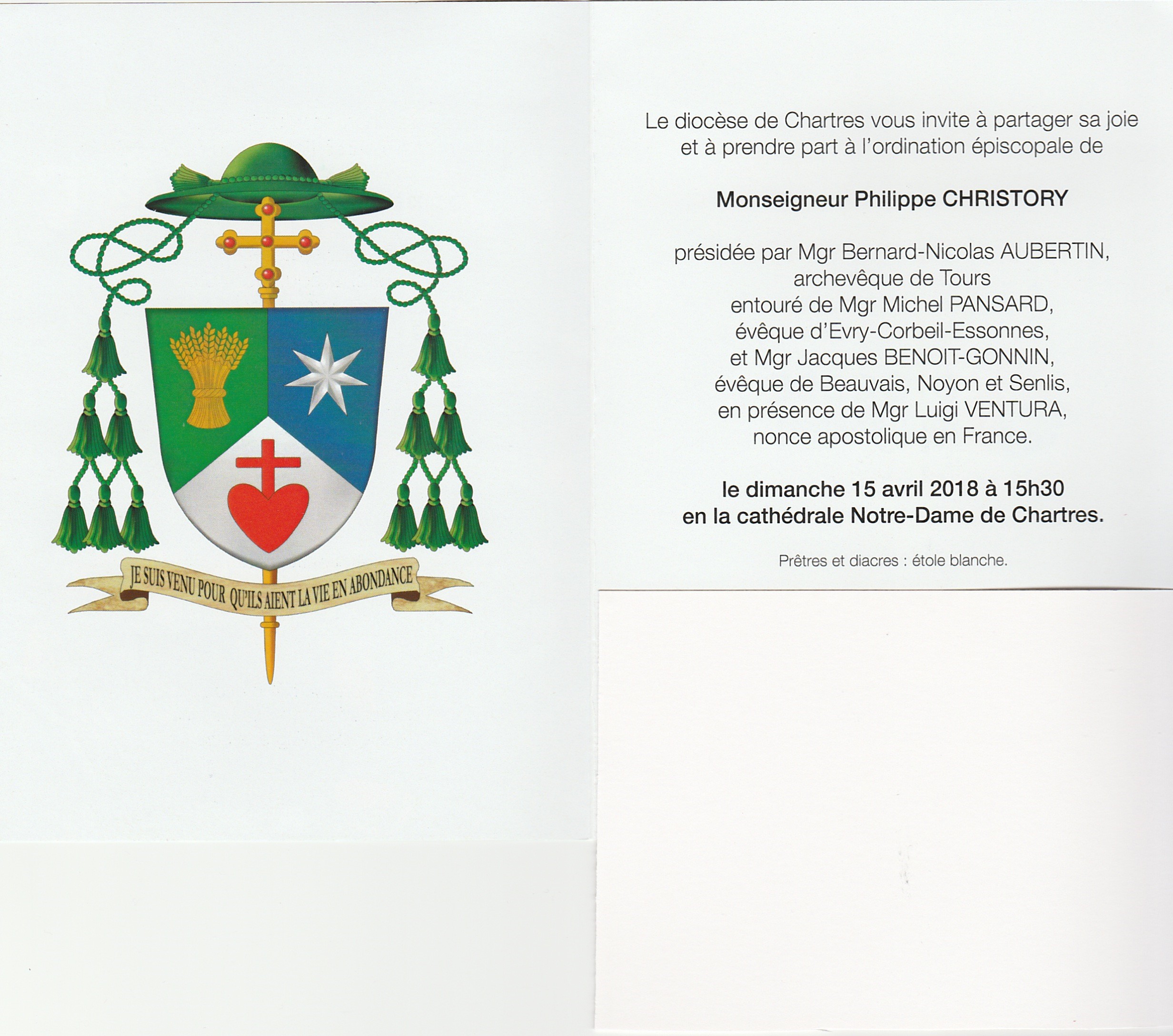 Accueil » Nos archives » 15 avril : ordination épiscopale de Mgr Christory Perepiscopus 15 avril : ordination épiscopale de Mgr Christory Vous noterez sur les armes du nouvel évêque de Chartres, ce Sacré-Coeur de Jésus, de bon augure pour les pèlerins de Pentecôte… Article précédentOrdinations et ordres mineurs à Courtalain Article suivantMesse de réparation suite à la profanation du sanctuaire de Domois 6 avril 2018