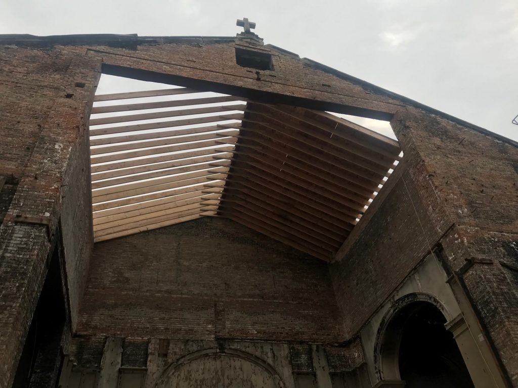 En 2015, le Sanctuaire du Christ Roi confié à l’Institut du Christ Roi brûlait mettant en cendres plusieurs mois de travaux. Les réparations avancent et devraient permettre d’ici quelques mois aux fidèles de retrouver leur église.