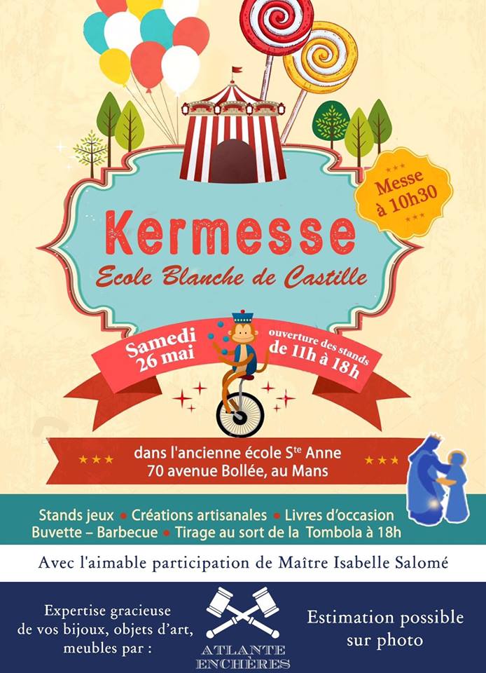 Le samedi 26 mai aura lieu la grande Kermesse de l’Ecole Blanche de Castille au Mans. L’école a été fondée par un groupe de parents en 2013 et compte aujourd’hui une école et un collège. L’aumônerie est assurée par la Fraternité Saint-Pierre.