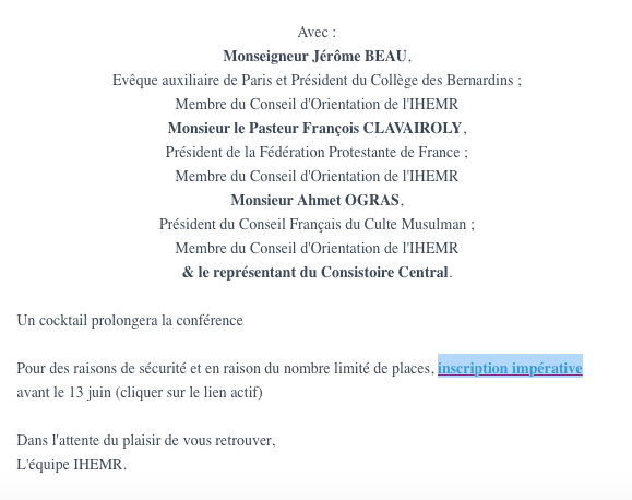 Je crains le pire . Cela vaut-il la peine de s’inscrire , par curiosité , pour entendre décliner une version syncrétiste , spiritualisante , du laicisme républicain multiculti-mondialiste avec la bénédiction de la « haute-finance » bien propre sur elle ?