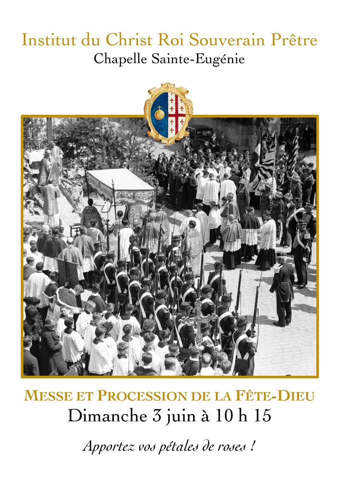 Accueil » Nos archives » Procession du Saint-Sacrement à Nîmes le 3 juin Summorum Pontificum Procession du Saint-Sacrement à Nîmes le 3 juin L’Institut du Christ Roi organise une procession du Saint-Sacrement à Nîmes le 3 juin. Article précédentOrdinations pour l'Institut du Christ Roi Article suivantOrdinations pour la Fraternité Saint-Pierre aux Etats-Unis 28 mai 2018