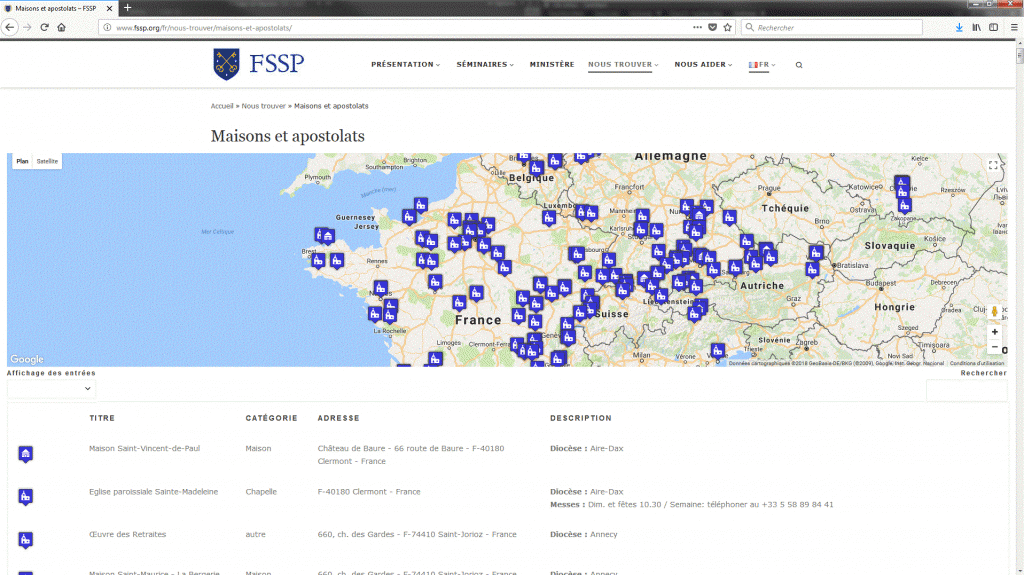 A l’occasion de son 30è anniversaire, la Fraternité Saint-Pierre vient de mettre en ligne une nouvelle maquette de son site internet. On y retrouve notamment une présentation de la FSSP, de ses supérieurs, de différents districts ainsi qu’une carte active des différents apostolats de la FSSP dans le monde.
