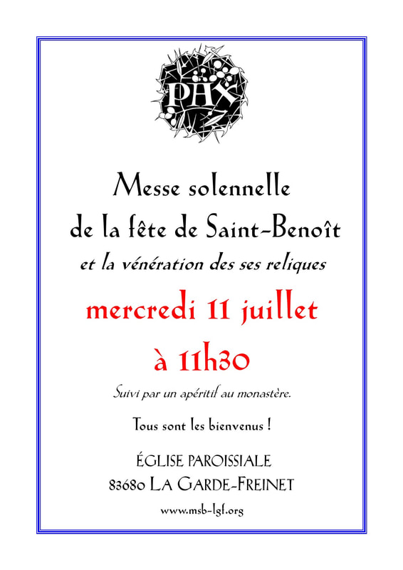 Un lecteur nous invite à diffuser l’annonce de cette messe au Monastère Saint-Benoit de Lagarde-Freinet (83) le 11 juillet, pour la Saint-Benoit :Monastère Saint-Benoit