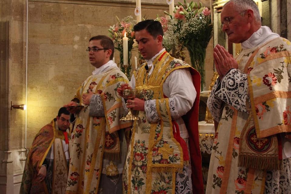 Le lendemain des ordinations de l’Institut du Bon Pasteur le dimanche 25 juin dernier, l’abbé Samuel Desmet, IBP, a célébré une première messe solennelle en l’église Saint-Éloi à Bordeaux, avec assistance pontificale du Cardinal Burke, qui avait ordonné les 4 prêtres la veille.