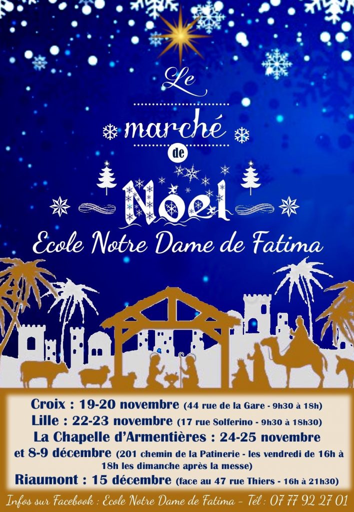 Le Marché de Noël de l’Ecole Notre-Dame de Fatima aura lieu comme les années passées sur les plusieurs semaines et en divers lieux… permettant à tous de venir faire quelques courses avant Noël (détail ci dessous).