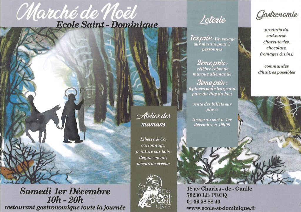Le Groupe Scolaire Saint-Dominique (Le Pecq) vous invite à son Marché de Noël le samedi 1er décembre prochain.