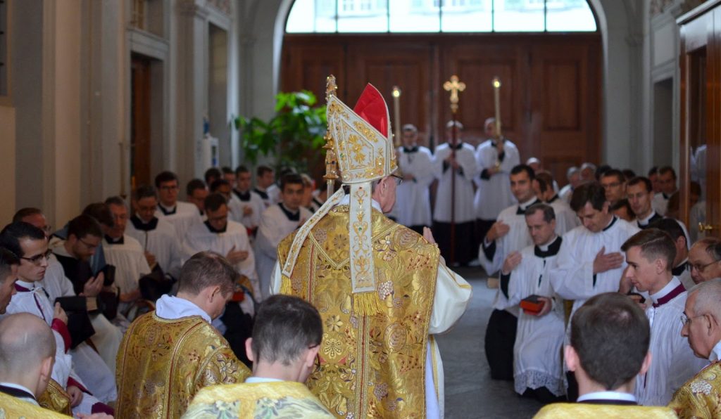 Mgr Vitus Huonder, archevêque de Coire (Suisse), a ordonné dans la forme extraordinaire pour son diocèse l’abbé Nuno Castelo Branco en la cathédrale de Coire le samedi 8 décembre. Les prêtres et séminaristes du Séminaire Saint-Pierre (Wigratzbad) assuraient le service de la messe pontificale. Il s’agit de la seconde ordination diocésaine dans la forme extraordinaire depuis le début de l’année.