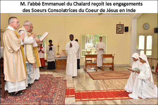 En la fête de l’Immaculée Conception le 8 décembre 2018, l’abbé du Chalard a reçu voeux de plusieurs soeurs : les sœurs Maria Cecilia et Maria Aloisia ont prononcé leurs premiers vœux, et la sœur Maria Immaculata ses vœux perpétuels, fondatrice des soeurs en Inde.