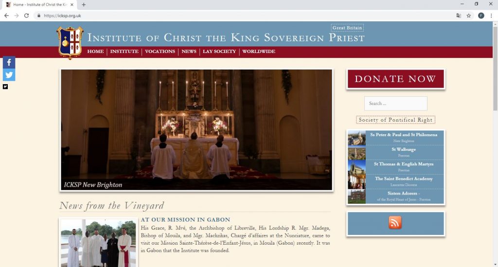 Depuis quelques mois, l’Institut du Christ Roi dispose d’un site internet pour ses différents apostolats au Royaume-Uni dans les diocèses de Lancaster, de Preston ou de Shrewsbury. 5 prêtres sont en ministère dans le pays (dont 3 prêtres français).