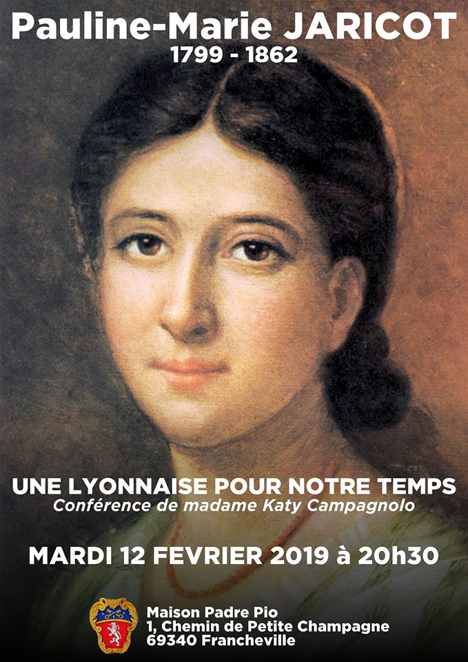 Un lecteur nous invite à diffuser cette information à propos de la conférence Pauline Jaricot une lyonnaise pour notre temps, de Mme Katy Campagnolo, ce mardi 12 février 2019 à 20h30 à la Maison Padre Pio (1, chemin de la Petite Champagne – 69 340 Francheville).