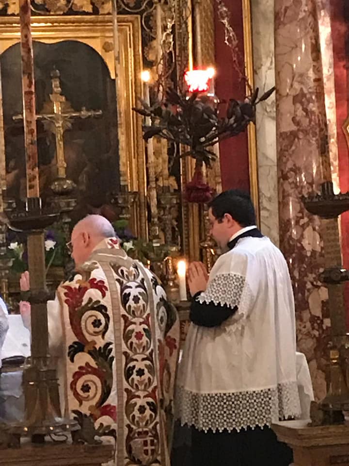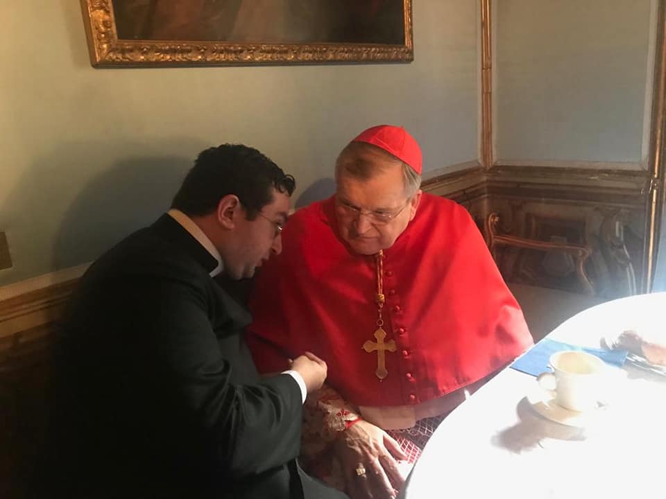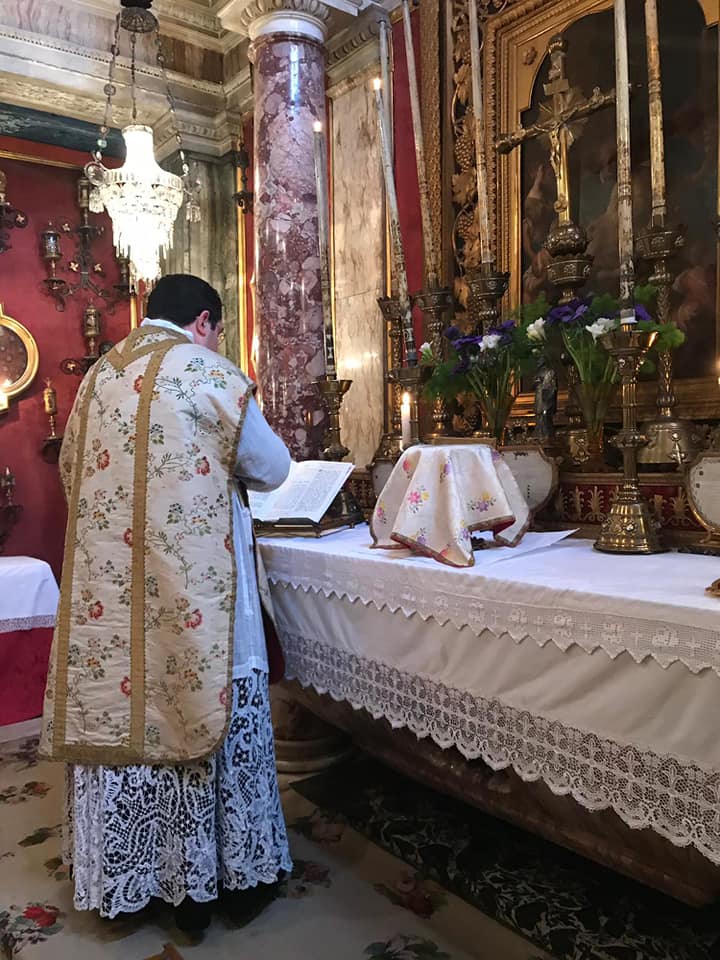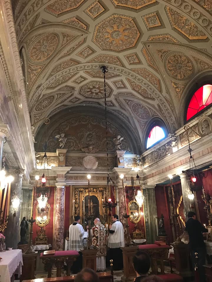 L’abbé Lenzi, hier a pu célébrer la Sainte Messe dans la chapelle du Palais des Princes Massimo à Rome à l’occasion de l’anniversaire du miracle d’une résurrection opérée par St Philippe de Néri. Notre Procurateur Général a aussi assisté en qualité de chapelain Son Exc. Mgr Bacqué, Nonce Apostolique et cher ami de l’IBP. Juste après il a rencontré, dans le petit salon du Palais et il a pu s’entretenir longuement avec lui, Son Éminence le Cardinal Burke qui a célébré la Grand’Messe pour la famille Massimo.