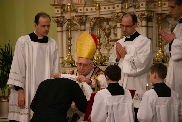 Le mois dernier, le 18 février, Mgr Terrence Prendergast SJ, archevêque d’Ottawa (Canada), a conféré la tonsure et les ordres mineurs à un séminariste jésuite de la province irlandaise dans le rite traditionnel en l’église Saint Clement d’Ottawa, la paroisse personnelle de la Fraternité Saint-Pierre. L’ordination a été conférée dans le cadre d’une messe prélatice, la messe votive pour la propagation de la foi.