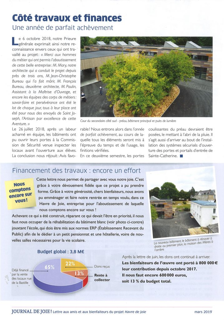 Les Mères cherchent encore près de 600 000 euros pour achever leur dernier travaux dont la réhabilitation d’un des bâtiment pour le pensionnat.