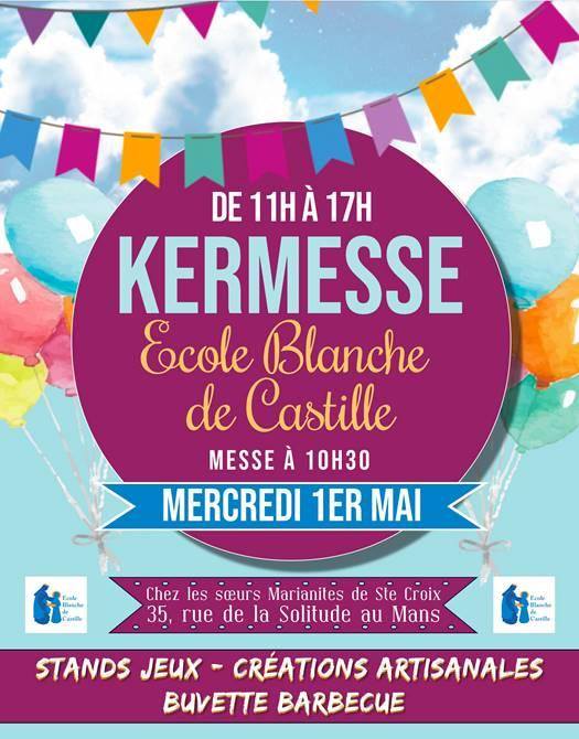 Un lecteur nous invite à diffuser les informations pour la prochaine kermesse de l’Ecole et du Cours Blanche de Castille au Mans. Cette école fondée en 2013 compte une soixantaine d’élèves de la maternelle au Collège. L’aumônerie est assurée par la Fraternité Saint-Pierre.