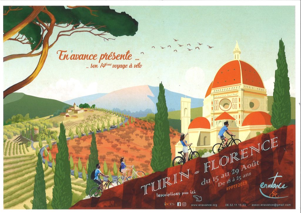 Les jeunes d’En Avance proposent le 14è périple en vélo de Turin à Florence du 15 au 29 août pour les 18 à 25 ans. Un prêtre de la Fraternité Saint-Pierre, l’abbé Thibault Desjars, accompagne leur camp. Découvrez ce sympathique et dynamique groupe sur leur site : www.enavance.org
