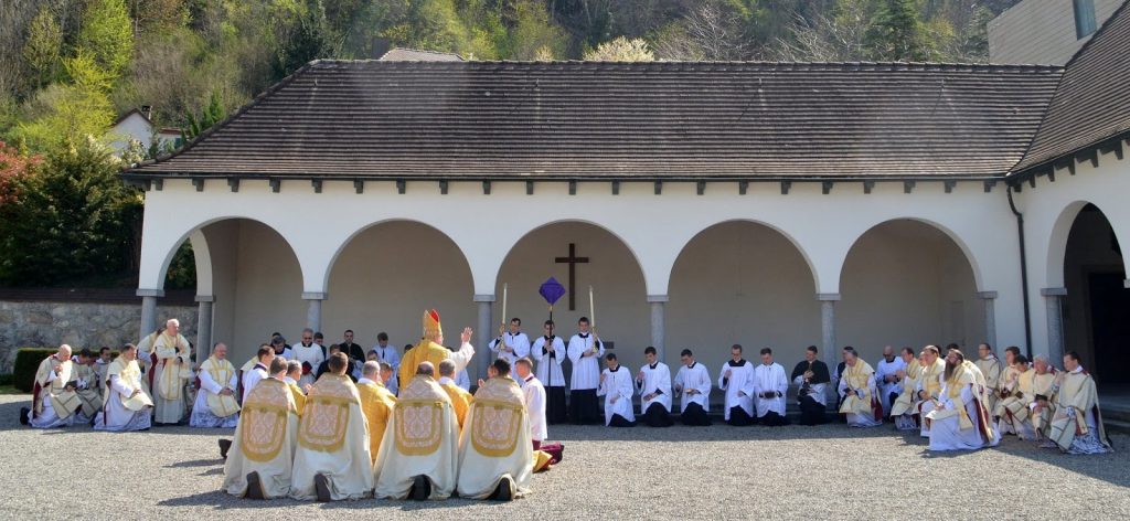 Comme les années passées le Jeudi Saint, Mgr Wolfgang Haas, archevêque de Vaduz (Liechtenstein), a célébré la messe chrismale de son diocèse dans la forme extraordinaire faisant appel pour compléter le service liturgique ainsi que les ministres au Séminaire Saint-Pierre voisin.