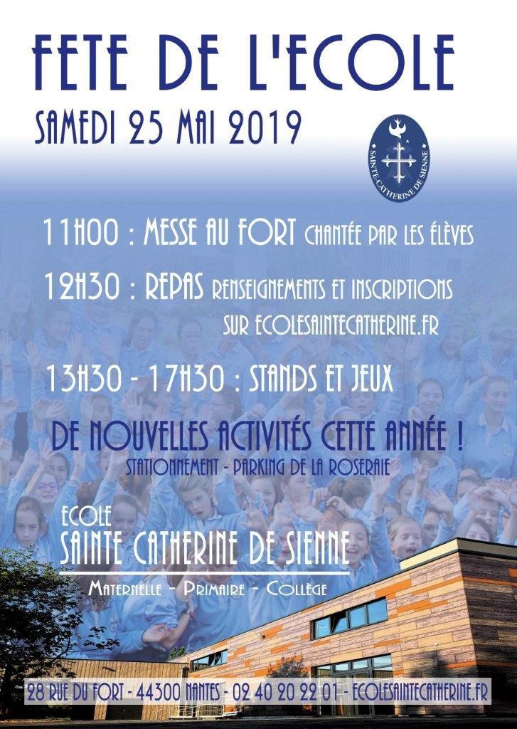 Accueil » Nos archives » Fête de l’Ecole Sainte Catherine à Nantes le 25 mai Summorum Pontificum Fête de l’Ecole Sainte Catherine à Nantes le 25 mai Fondée en 1977, par les Dominicaines du Saint-Esprit à Nantes, l’école Sainte-Catherine vous invite à sa fête de l’école le samedi 25 mai. Venez découvrir les nouveaux locaux de l’école. Ecole Sainte Catherine Article précédentNotre-Dame de Paris est d’abord une église Article suivantVente de charité de l'Institution Saint Pie X à Saint-Cloud les 25 et 26 mai 2019 11 mai 2019