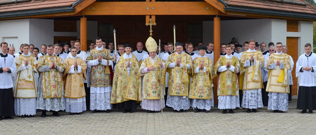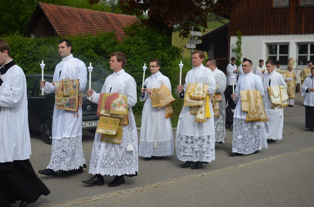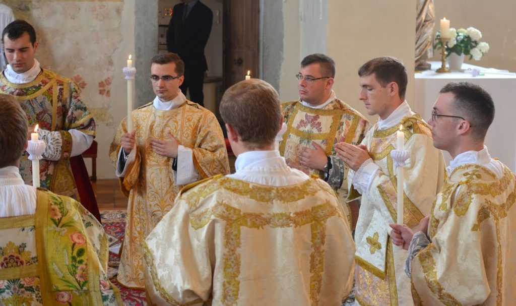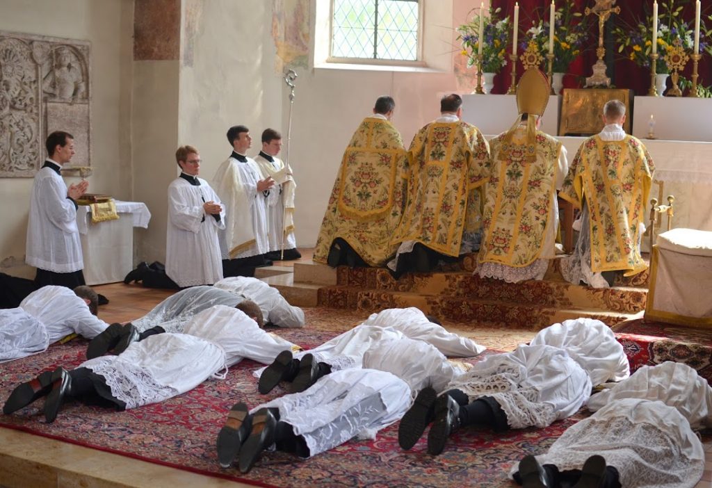 Ce samedi 25 mai, Mgr Marc Aillet, évêque de Bayonne, est venu ordonner 7 diacres pour la Fraternité Saint-Pierre en l’église de Gestratz (Allemagne) : trois Français, deux Allemands, un Autrichien et un Néo-Zélandais. La veille, les diacres avaient été incardinés définitivement au sein de la Fraternité Saint-Pierre. En mars dernier, 7 autres diacres de la Fraternité Saint-Pierre avaient été ordonnés au Séminaire de Denton (USA).