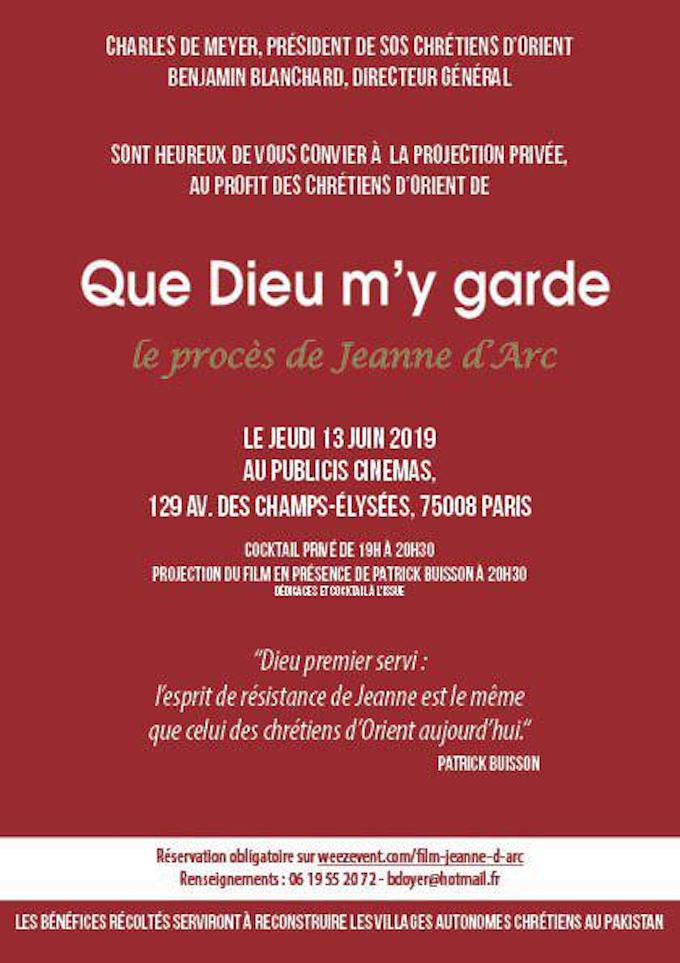 Pour assister à cette projection exceptionnelle au profit des chrétiens d’Orient, vous devez obligatoirement réserver votre billet en ligne ici (nombre de place limité). Renseignements : 01 83 92 16 53.