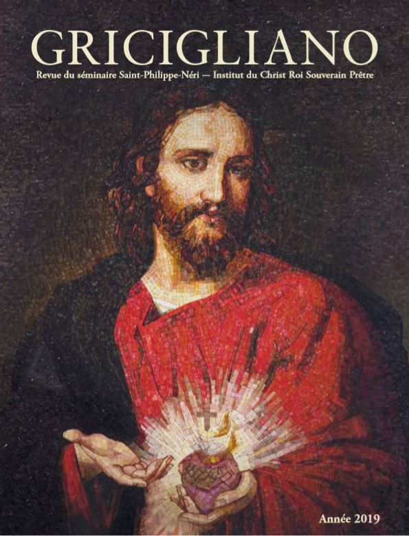 Le Séminaire Saint Philippe Néri, séminaire de l’Institut du Christ Roi à Gricigliano (Italie), vient de publier sa revue annuelle dont le thème est le Sacré-Coeur. « Ces quelques pages visent simplement à faire connaître un peu mieux cette dévotion si nécessaire pour notre temps. À toutes les âmes dont la charité s’est refroidie, il est urgent de montrer la fournaise ardente de charité, fornax ardens caritatis, qu’est le Sacré-Cœur. Alors il pourra régner davantage sur nos propres cœurs, sur nos familles, sur nos pays, et tout particulièrement à travers la très belle dévotion des neuf premiers vendredis du mois« . On pourra ainsi lire notamment des contributions sur le Sacré-Coeur dans les écritures, les apparitions de Paray-le-Monial, les promesses du Sacré-Coeur… ainsi que celle du Cardinal Burke « La Divine Miséricorde et le Sacré-Coeur ».