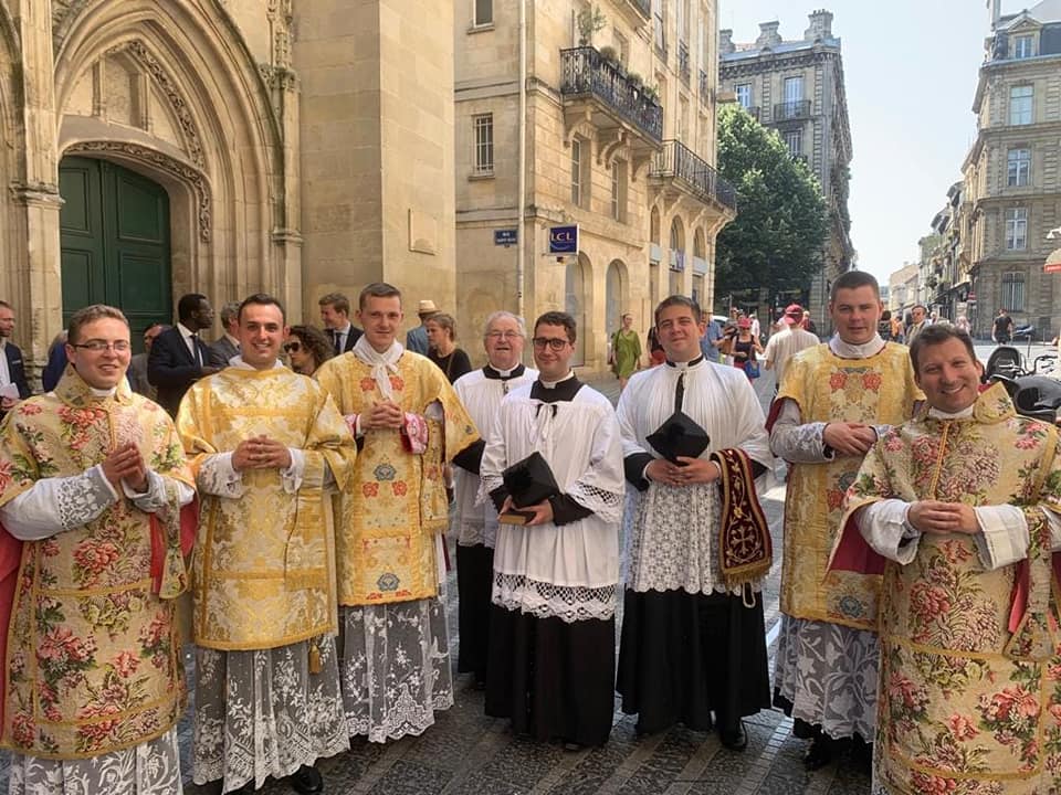 Ce samedi 29 juin, Mgr François Bacqué, nonce apostolique émérite, a ordonné 1 prêtre, l’abbé Serge-Christian Vallet, et 5 diacres pour l’Institut du Bon Pasteur en l’église Saint-Eloi de Bordeaux.