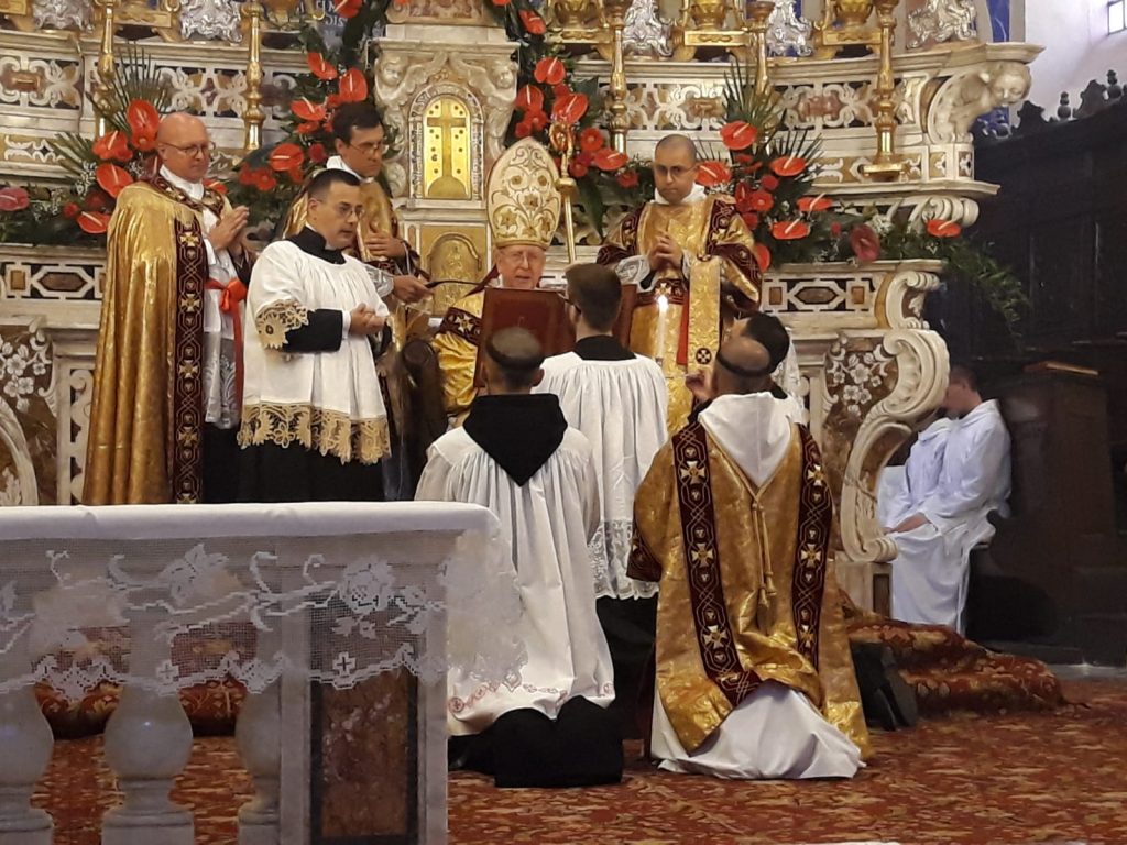 Le samedi 13 juillet, en la très baroque église de Dolcedo à 10 km de Villatalla, deux frères de la Communauté des Bénédictins de l’Immaculée ont reçu l’un les deux derniers ordres mineurs d’exorciste et d’acolytat (frère Marie), l’autre le diaconat (frère Antoine).