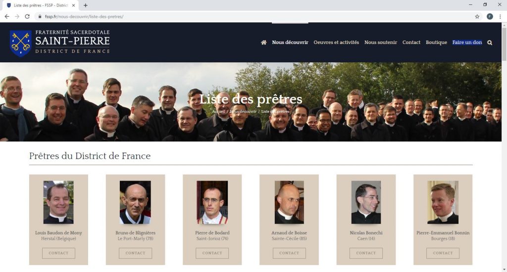 - L’abbé Denis Cuchet (Tours) est nommé Supérieur de la Maison Sainte-Thérèse à Fontainebleau.